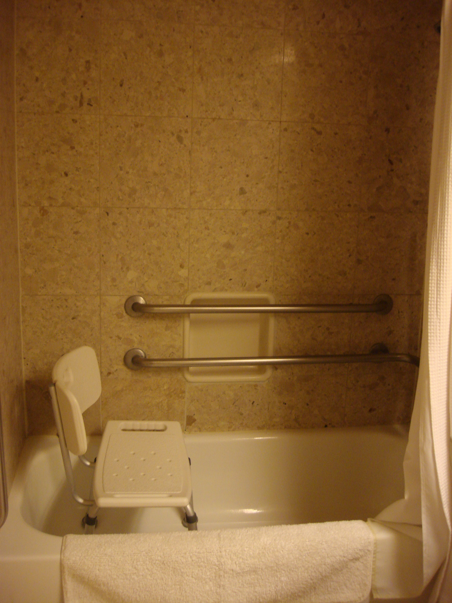 The suspended toilet seat was a bit different but had grab bars both behind and beside the toilet seat. If you travel with a padded toilet seat, I’m not sure that it will fit on this design, but you could rent a commode from one of the many healthcare stores in Calgary, if necessary (most will drop off and pick up any rented equipment at your hotel if you ask them).