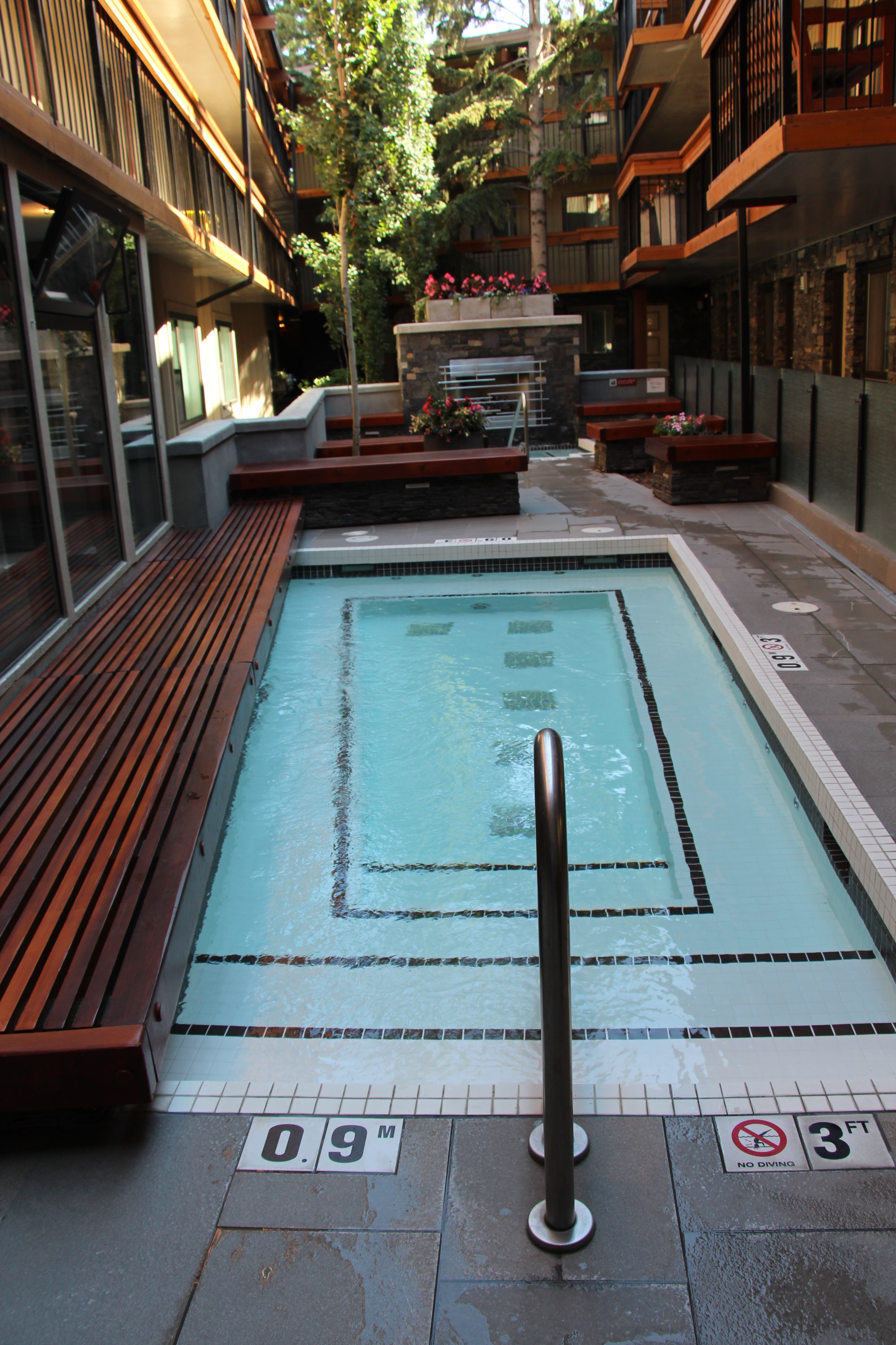The hotel did not have a pool but it did have two hot tubs, which were located in the central courtyard area of the hotel. The hot tub area was open to the sky, so there was quite a nice atmosphere in there. The hot tubs were very warm, but not so uncomfortable that the kids wouldn’t go in. One of the hot tubs faced a nice, outdoor fireplace. There was also a steam room and sauna located right beside the doors leading in to the hot tub area.